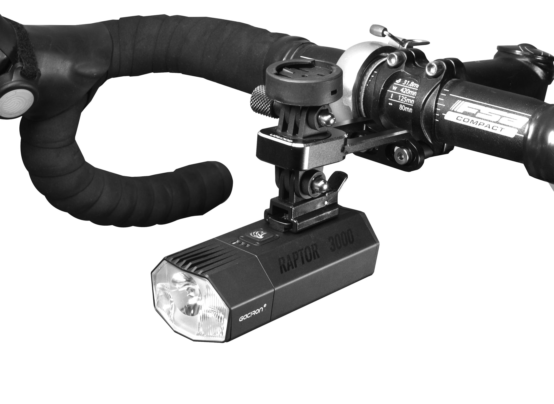 GP規格のマウントを上下に装備しており、Gaciron専用ライトベース、Garmin、Brytonなどのサイクルコンピューターの取り付けが可能です。